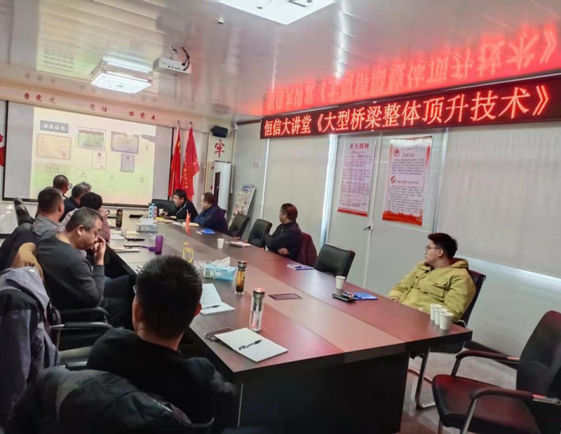 本次恒信監(jiān)理大講堂由公司總工程師高厚儒帶隊(duì),采用線下與線上相結(jié)合的方式,公司年輕骨干人員現(xiàn)場參會,公司其他監(jiān)理人員通過線上參加會議,項(xiàng)目聘請了上海天演建筑物移位工程股份有限公司技術(shù)總工張昊進(jìn)行授課,會議上主要講解了本工程頂升概況、重點(diǎn)難點(diǎn)、施工中應(yīng)注意事項(xiàng)、如何保證頂升中施工安全、已完成頂升的橋梁工程業(yè)績等內(nèi)容。通過本次學(xué)習(xí)讓我們監(jiān)理人員了解橋梁頂升技術(shù)參數(shù)要求,施工中應(yīng)注意控制的重要節(jié)點(diǎn)及關(guān)鍵工序的控制要點(diǎn),既拓寬了監(jiān)理人員的橋梁頂升技術(shù)知識,也為后期現(xiàn)場橋梁頂升監(jiān)理工作做更好的鋪墊。