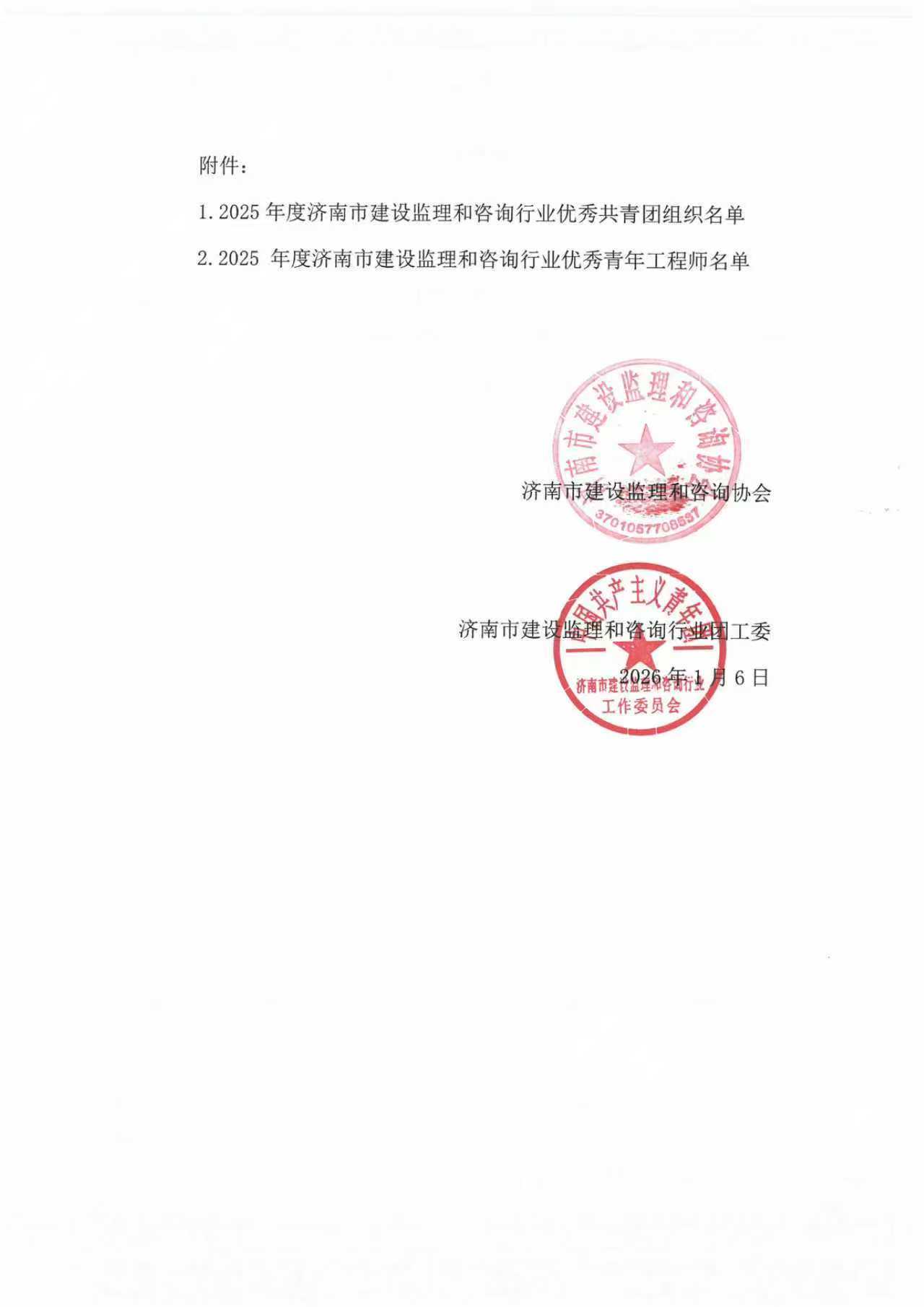 熱烈慶祝山東恒信建設(shè)監(jiān)理有限公司共青團組織獲評濟南市建設(shè)監(jiān)理和咨詢協(xié)會2025年度優(yōu)秀共青團組織,2名青年員工榮獲優(yōu)秀青年工程師稱號!